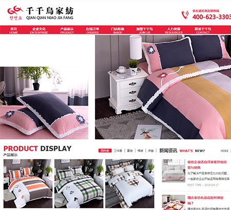 家用紡織品,威海市環翠區網站建設公司,做網站優化關鍵詞排名SEO,營銷型,手機網站建設,響應式,品牌型,電商/門戶,家用紡織品,威海市環翠區外貿型網站建設. 威海千千鳥家紡有限公司,是國內最早涉足韓國家用紡織品,并迅速形成品牌優勢的家紡企業,是中國現代特色家紡業的主要倡導者。